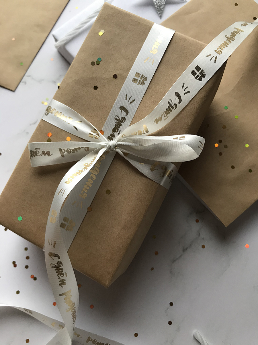 Лента упаковочная, бант для подарка, с надписью "С днем рождения",5 м/15мм