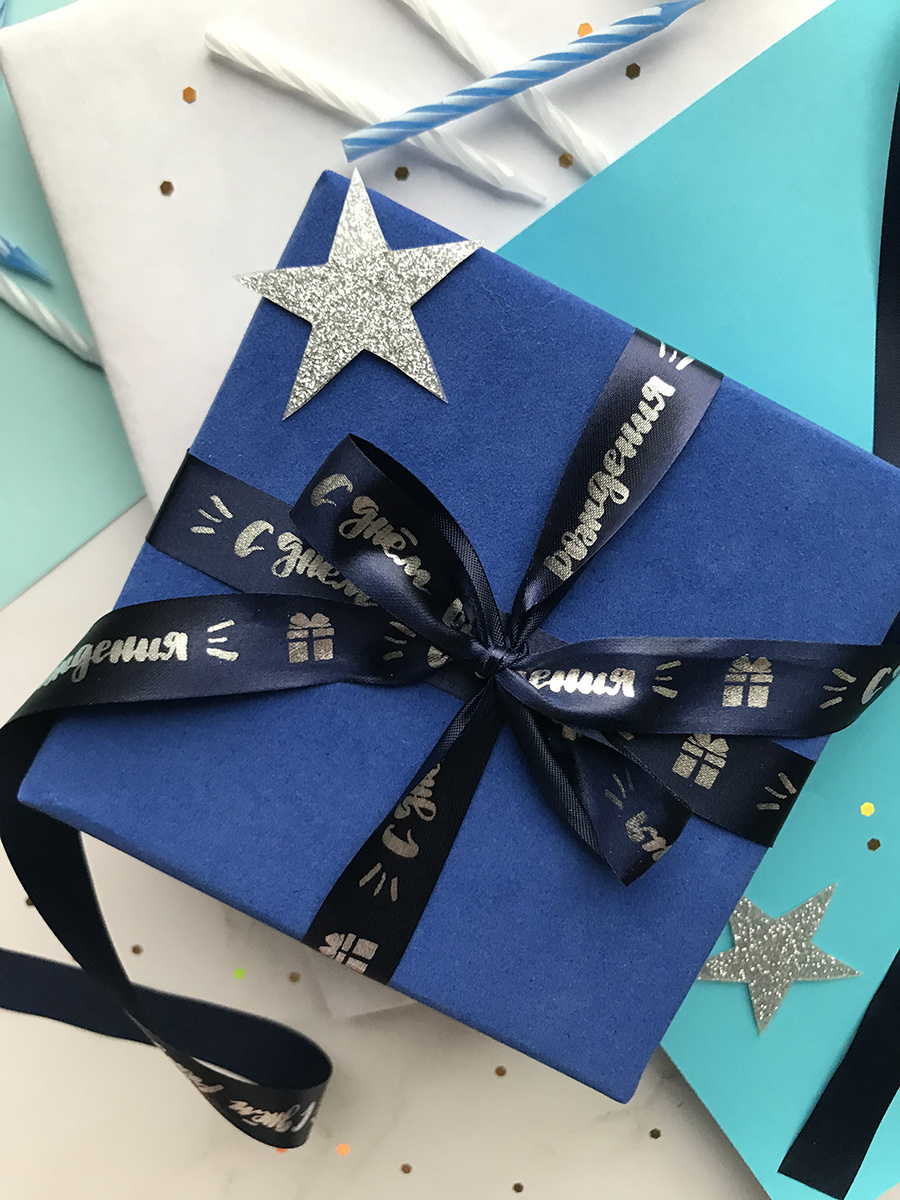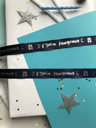 Лента упаковочная, бант для подарка, с надписью "С днем рождения",5 м/15мм