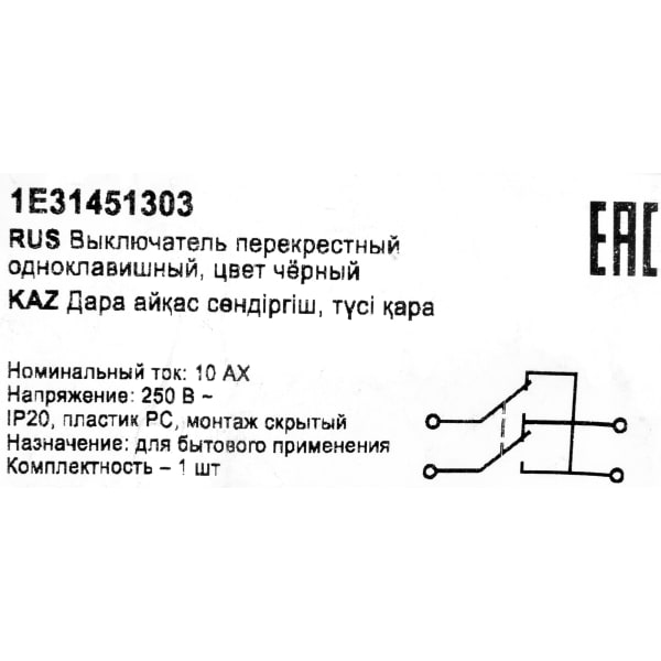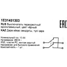 Выключатель перекрёстный 1 клавиша цвет чёрный