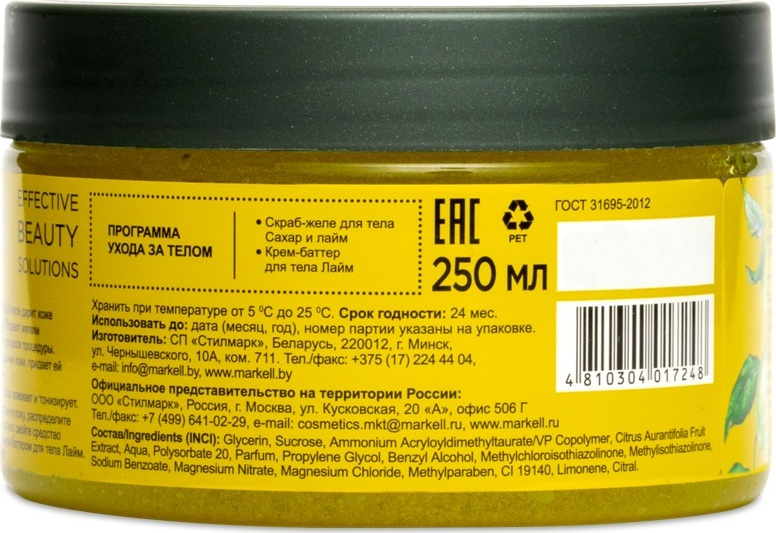 Markell Скраб-желе для тела GREEN COLLECTION сахар и лайм, 250 мл