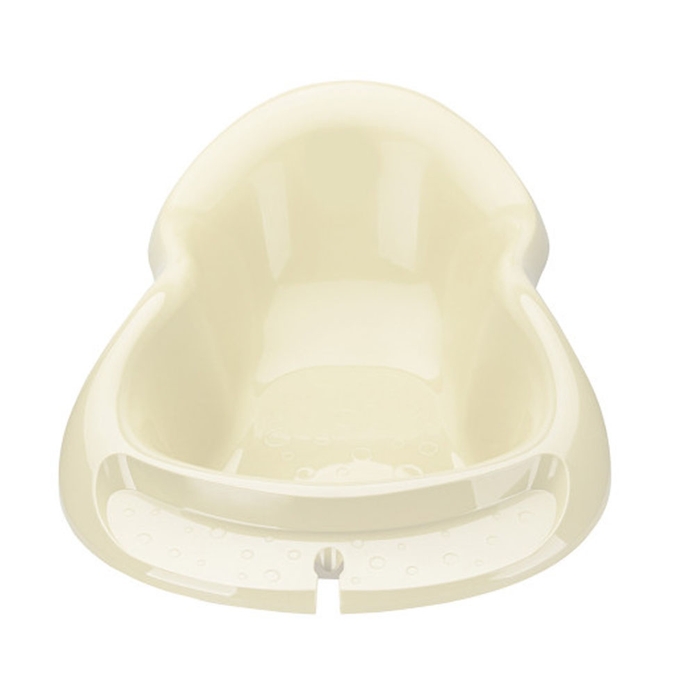 Эргономичная форма ванны позволяет удобно расположить в ней ребенка в положении лежа, а благодаря удобному наклону спинки — сидя, когда малыш немного подрастет. Устойчивое дно с особым ребристым покрытием предотвращает скольжение ребенка во время купания. Специальное отверстие на бортике предназначено для крепления душевой лейки непосредственно на ванне, что позволит легко наполнить ванну водой из душа, а также легко регулировать температуру воды. Рельефная полочка для купальных принадлежностей позволит всегда иметь их под рукой.