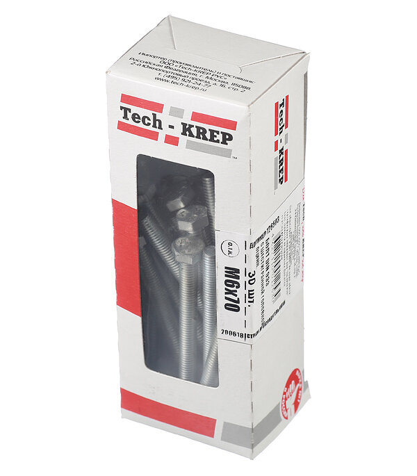 Tech-Krep Болт DIN933 с шестигранной головкой оцинк. М6х70 (30 шт) - коробка с ок. Tech-Kr (126503)