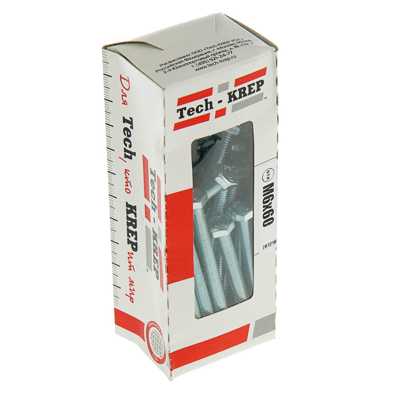 Tech-Krep Болт DIN933 с шестигранной головкой оцинк. М6х60 (30 шт) - коробка с ок. Tech-Kr (105206)