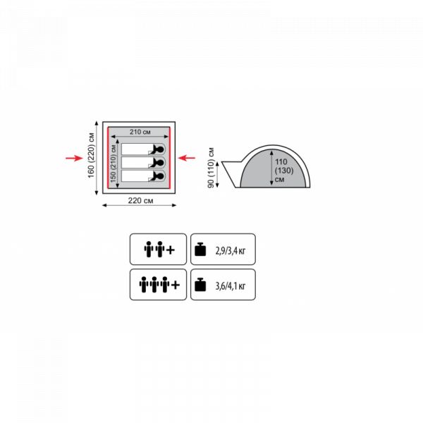 Качественная палатка по приемлемой цене. В походе она станет защитой от дождя, даже если дождь будет лить круглые сутки. Хорошее качество тканей внешней и внутренней, огромная комната и просторный тамбур обеспечит удобство и комфорт. Высота внутренней палатки составляет целых 130 см, что очень важно. Угловые карманы для складывания дверей – очень удачное решение, также как и молнии разного цвета от москитной сетки и самой двери, чтобы не перепутать.
