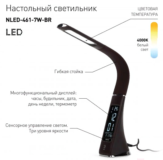 Настольная лампа ЭРА NLED-461-7W-BR (коричневый)
