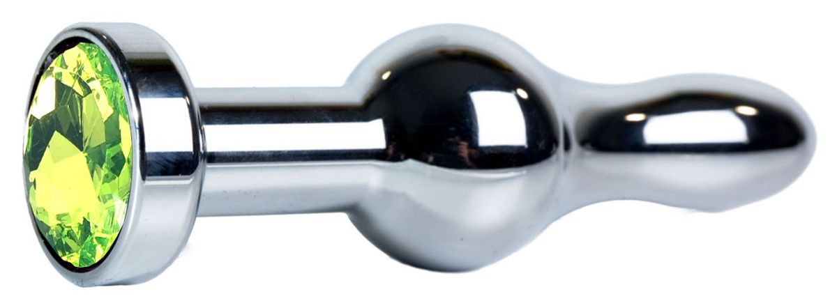 - Модель Серебристая каплевидная анальная пробка с лаймовым кристаллом - 10,5 см.