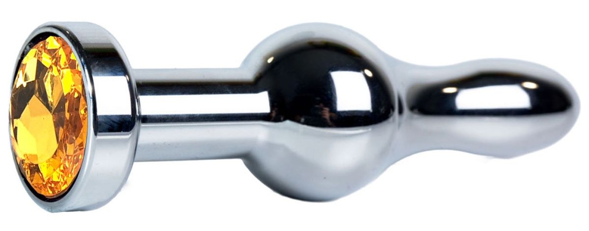 - Модель Серебристая каплевидная анальная пробка с оранжевым кристаллом - 10,5 см.