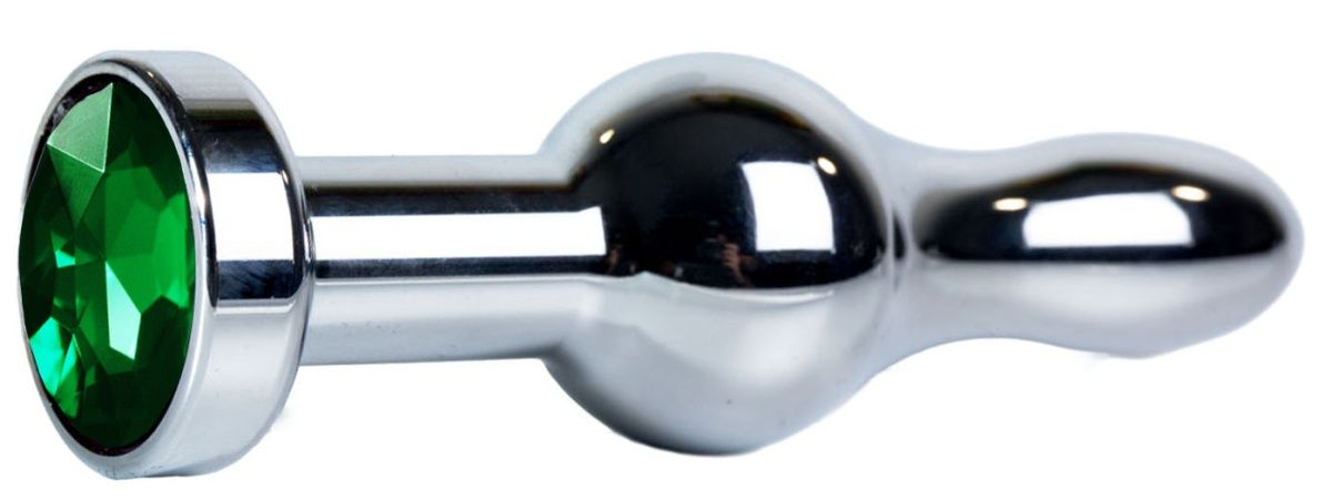 - Модель Серебристая каплевидная анальная пробка с зеленым кристаллом - 10,5 см.
