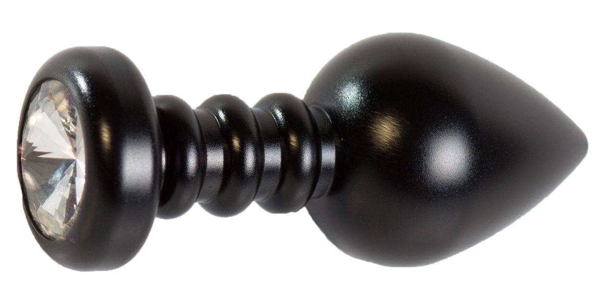 - Модель Черная рельефная анальная пробка с прозрачным стразом - 9 см.