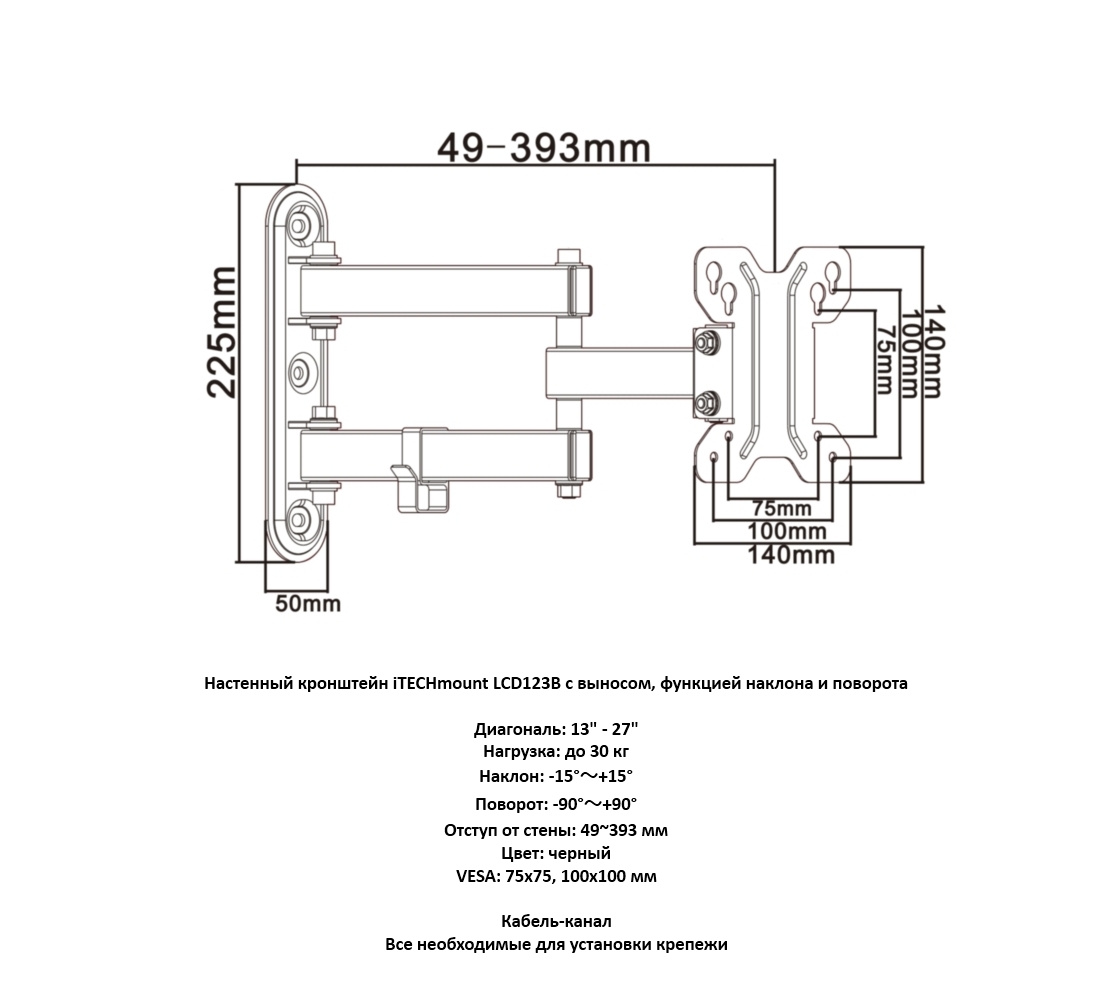 - Настенное крепление (VESA) 75x75 мм, 100x100 мм