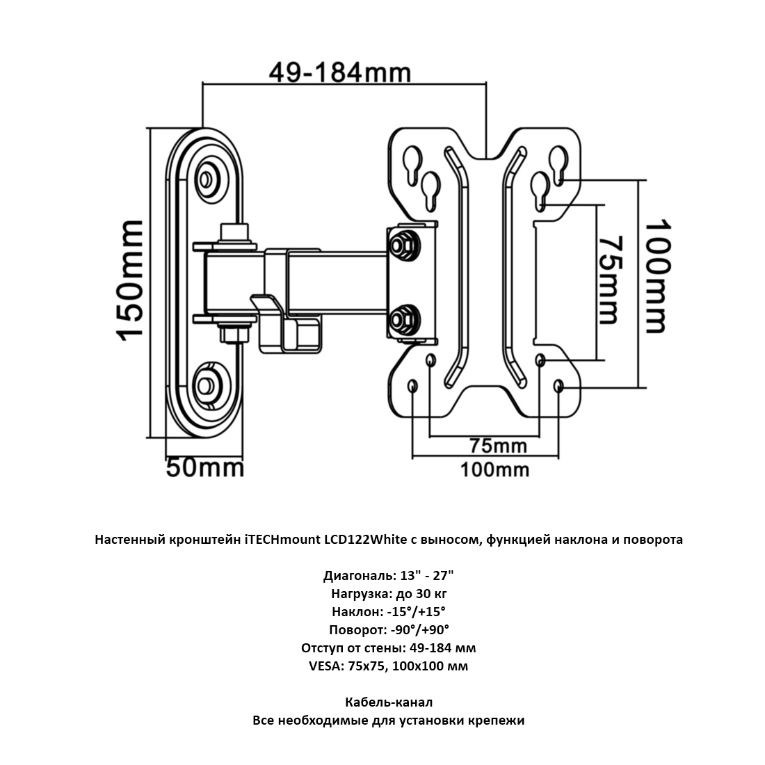 - Настенное крепление (VESA) 75x75 мм, 100x100 мм