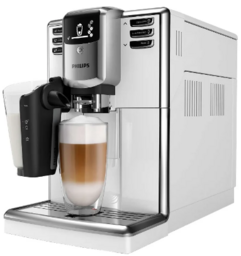 Кофемашина, тип кофе: зерно, молотый, давление помпы 15 бар, объем контейнера для кофе 250 г, регулировка: крепости кофе, температуры кофе, помола, размера порции, функции: капучинатор, дозировка на 2 чашки.