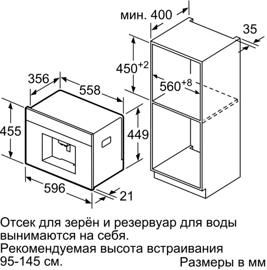 • Функции Капучинатор; Дозировка на 2 чашки; Подсветка зоны приготовления; Режим ожидания