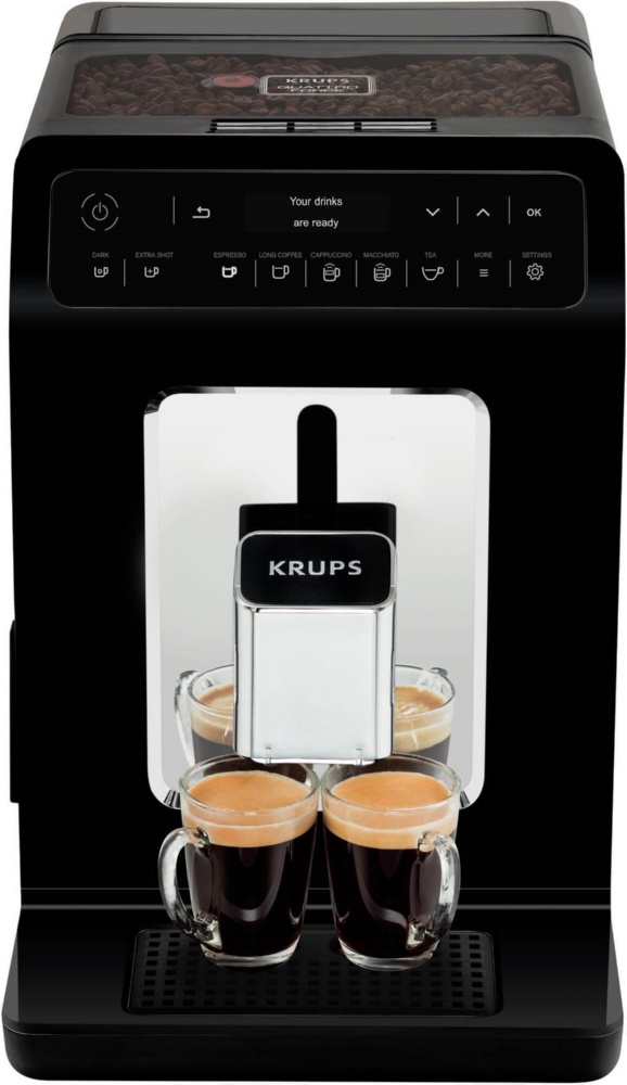 Кофемашина, тип кофе: зерно, мощность 1450 Вт, давление помпы 15 бар, объем контейнера для кофе 250 г, регулировка: крепости кофе, температуры кофе, помола, размера порции, высоты подачи кофе, функции: капучинатор, дозировка на 2 чашки.