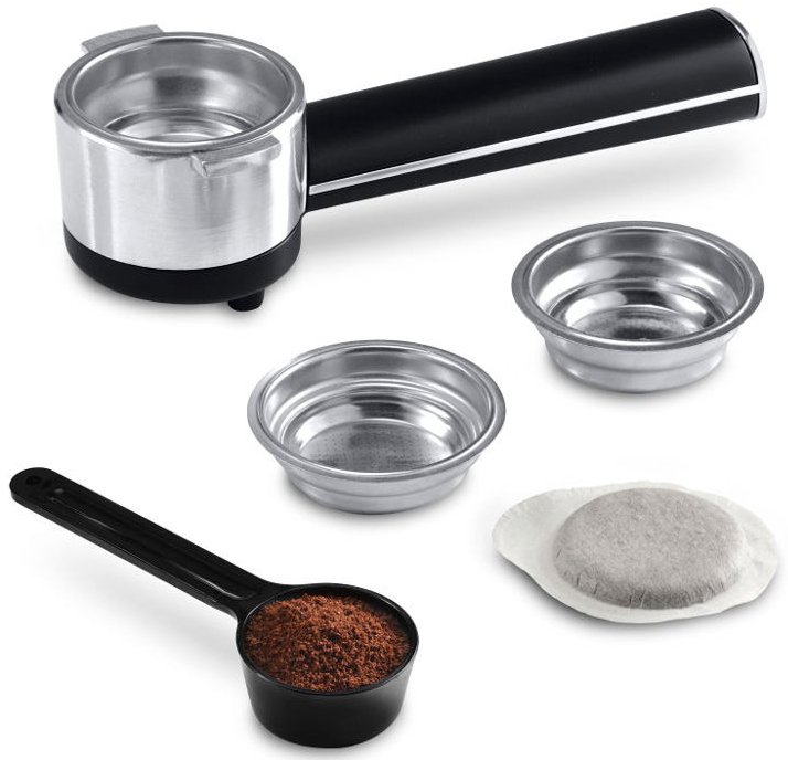 Кофеварка рожковая (эспрессо), тип кофе: молотый, чалда, мощность 1100 Вт, давление помпы 15 бар, функции: капучинатор, дозировка на 2 чашки, подогрев платформы для чашек.
