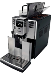 Кофемашина, тип кофе: зерно, молотый, давление помпы 15 бар, объем контейнера для кофе 250 г, регулировка: крепости кофе, температуры кофе, помола, размера порции, высоты подачи кофе, функции: капучинатор, дозировка на 2 чашки.