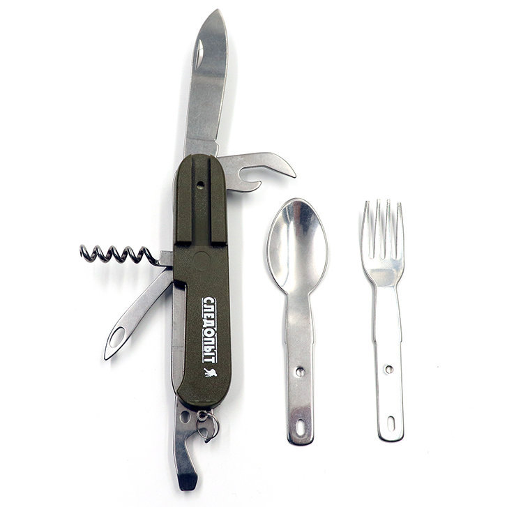 - Опции мультитула нож для хозяйственных работ; шило; штопор; открывалка для бутылок; ложка; консервный нож; вилка