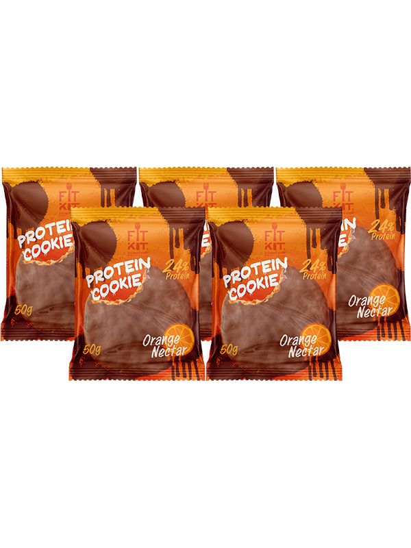 - Модель Fit Kit Chocolate Protein Cookie, 5шт x 50г (апельсиновый нектар)
