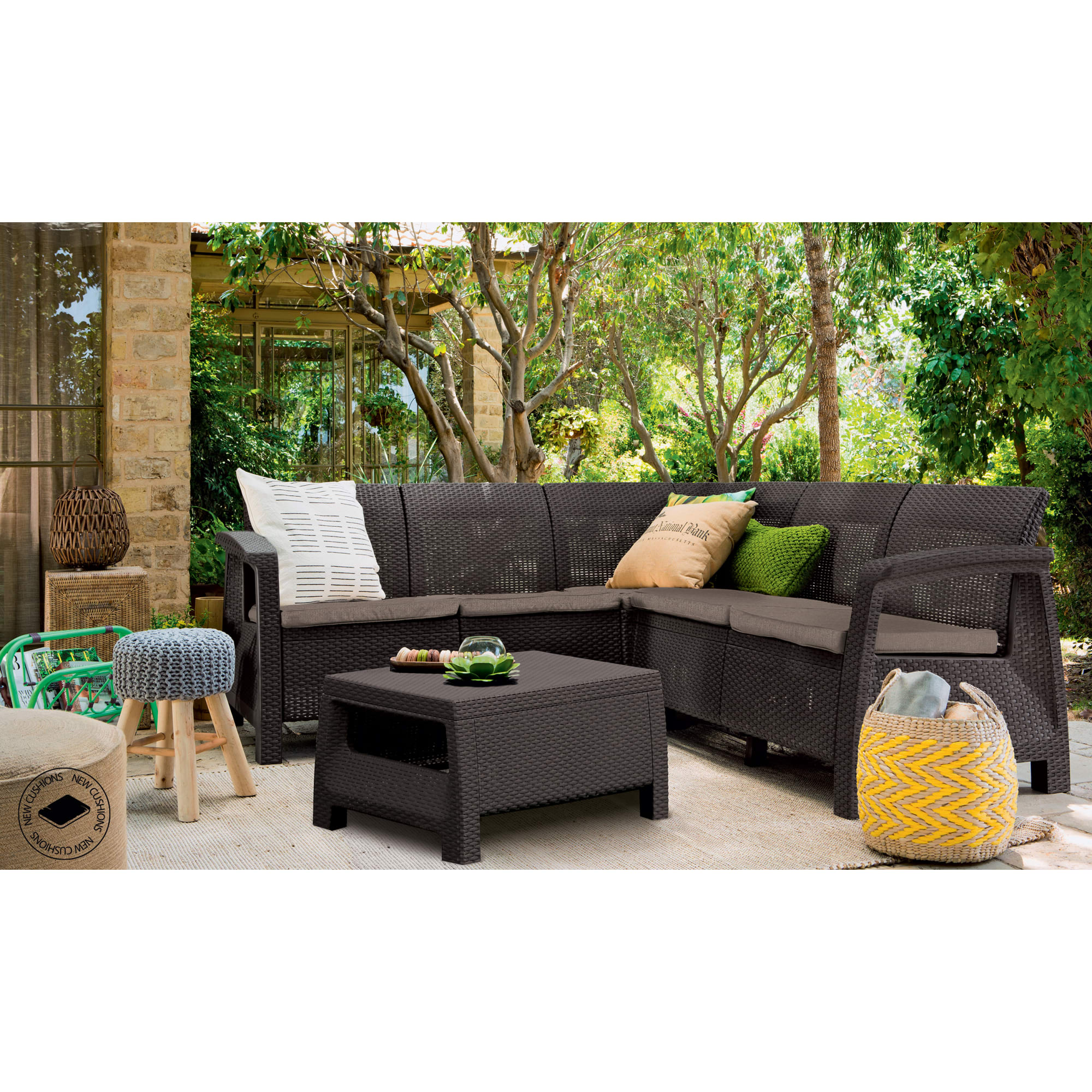 Диван садовый угловой Keter Corfu Relax, цвет коричневый