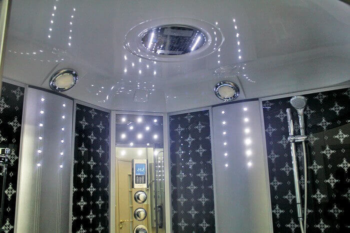 - Комплектация центральная стойка, свет, динамик, вентилятор, пульт, радио, гидромассаж, верхний душ, ручной душ, зеркало, смеситель, полка, поддон, сифон