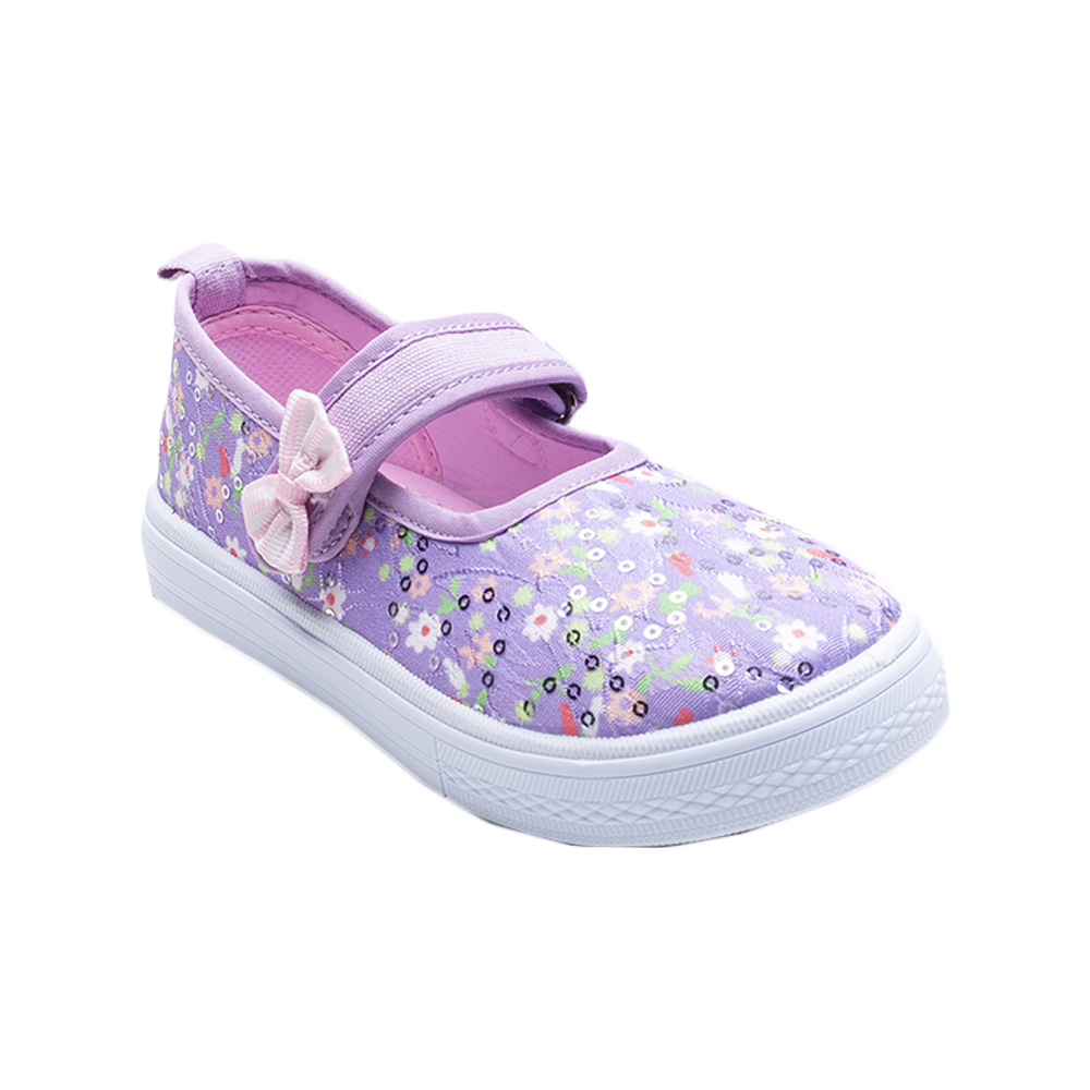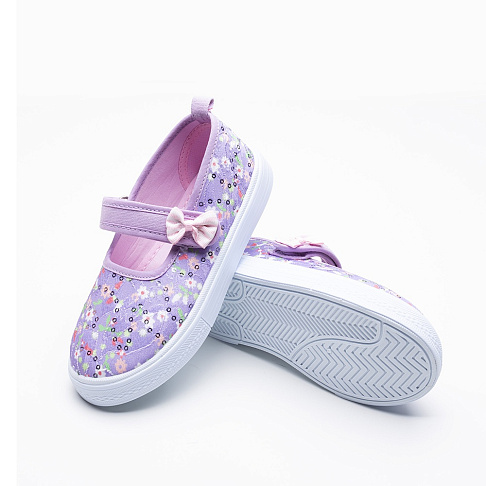 Легкие туфли с принтом в виде цветков. Кеды фиксируют ножку с помощью ремешка с удобной липучкой. Текстильная стелька обеспечивает комфорт и удобство во время носки. Рифленая подошва устойчива к деформациям, обеспечивает комфорт и устойчивость.