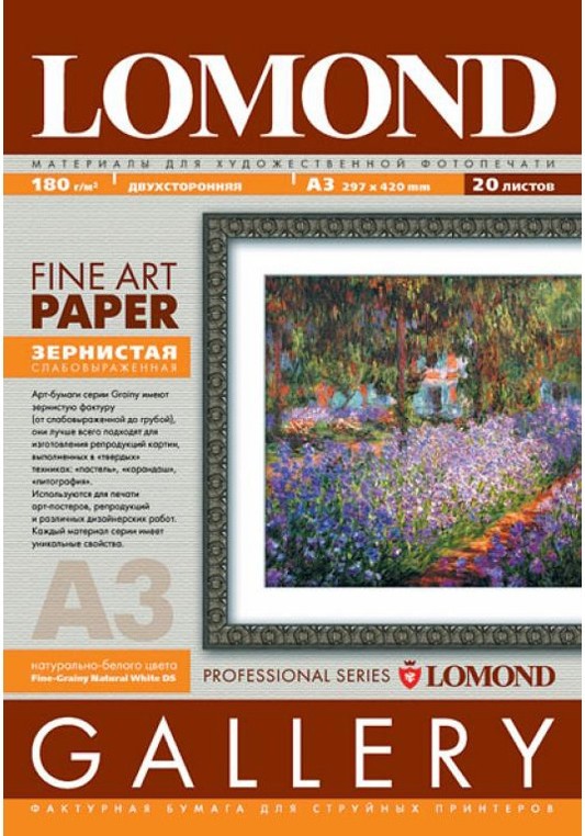 бумага зернистой фактуры, без покрытия, формат A3, плотность 180 г/м2, 20 листов