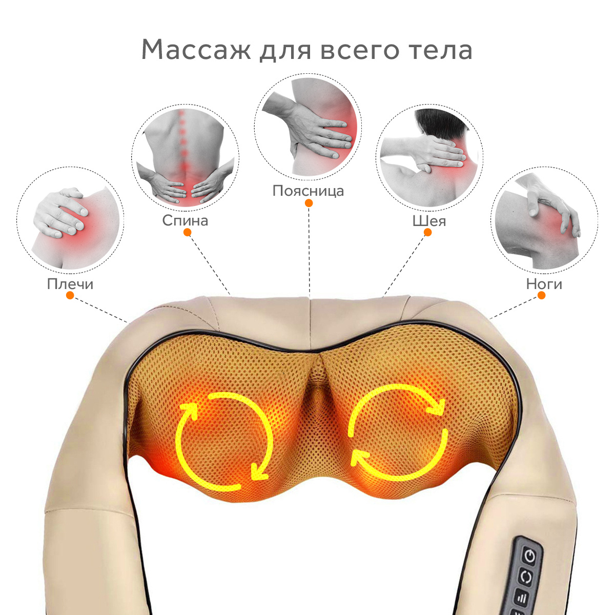 • Зоны массажа Шея, Плечи, Бедра, Поясница, Ноги