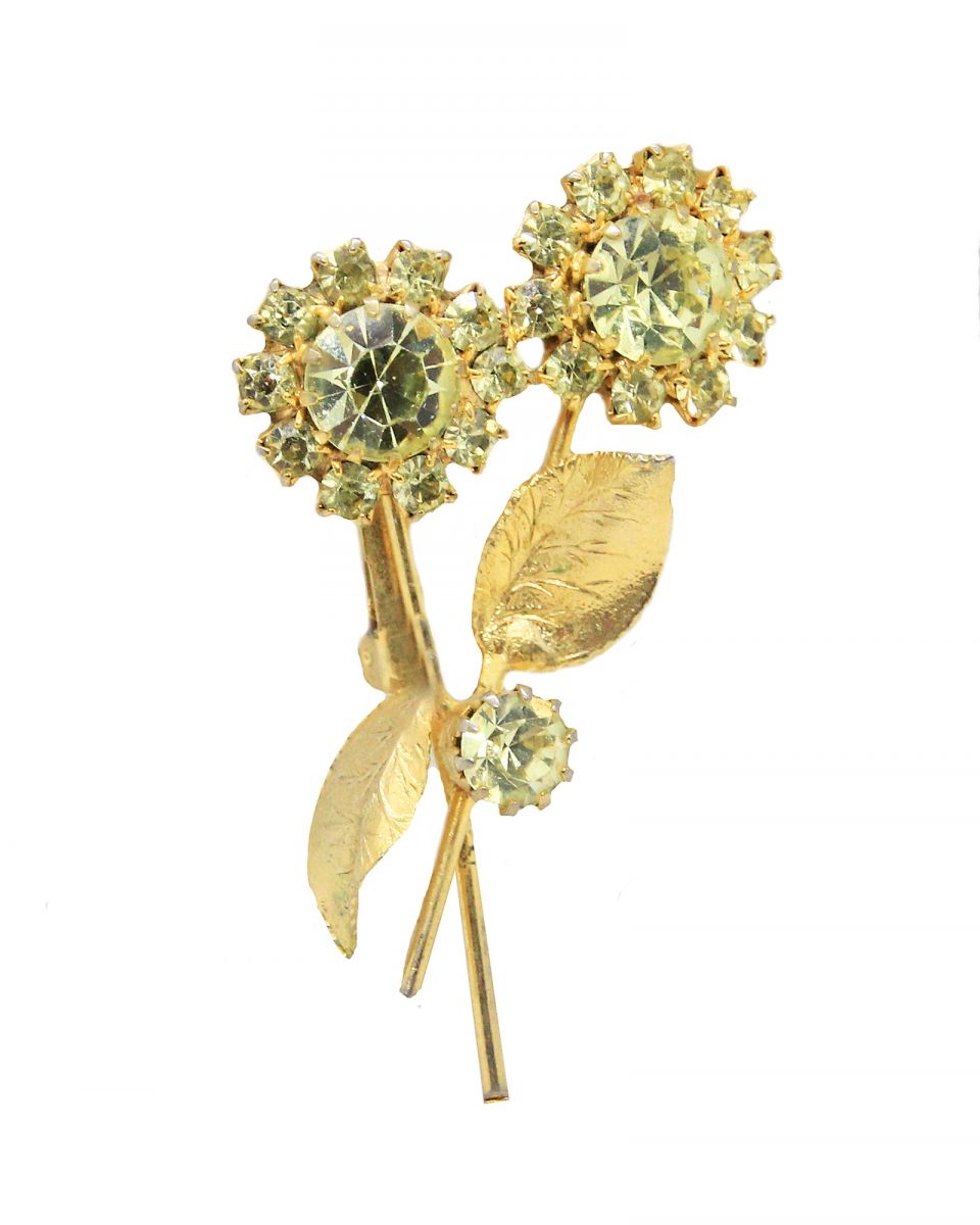 Винтажная брошь "Хрустальный букет". Ювелирный сплав золотого тона, хрустальные стразы. США, 1970-е годы