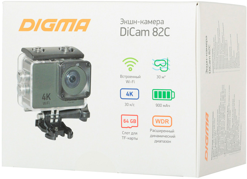 Камера, 20 Мп, видео 3840x2160 (4K Ultra HD), экран 2 ", стабилизация изображения, USB, Wi-Fi, HDMI, вес 70 г.