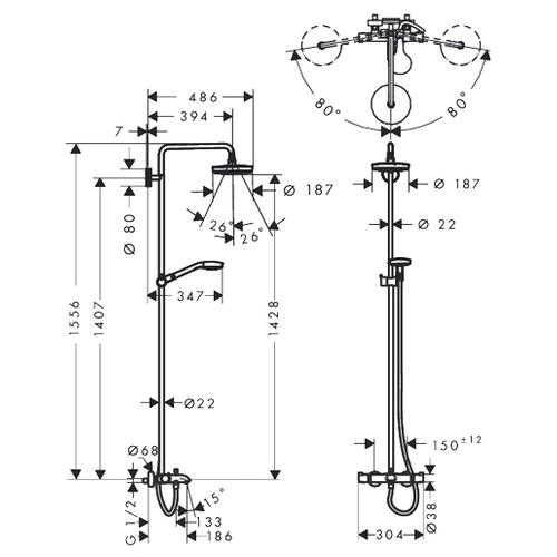 - Оснащение душевая лейка, смеситель, шланг для душа, аэратор, держатель для душа