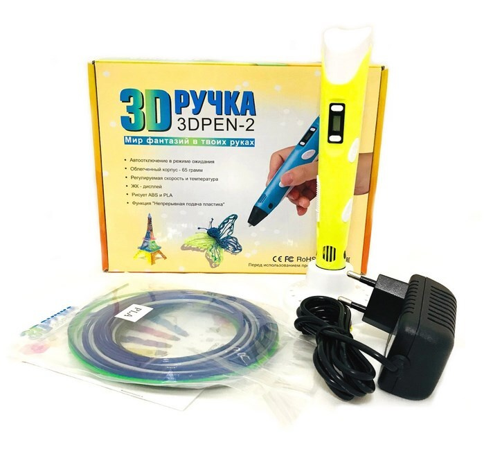 3D ручка 3DPEN-2 с адаптером (цвет: желтый) и набором трафаретов для 3D ручки
