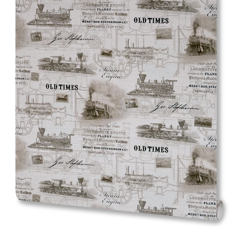 Обои флизелиновые Ovk Design Паровозы серые 1.06 м 10051-03