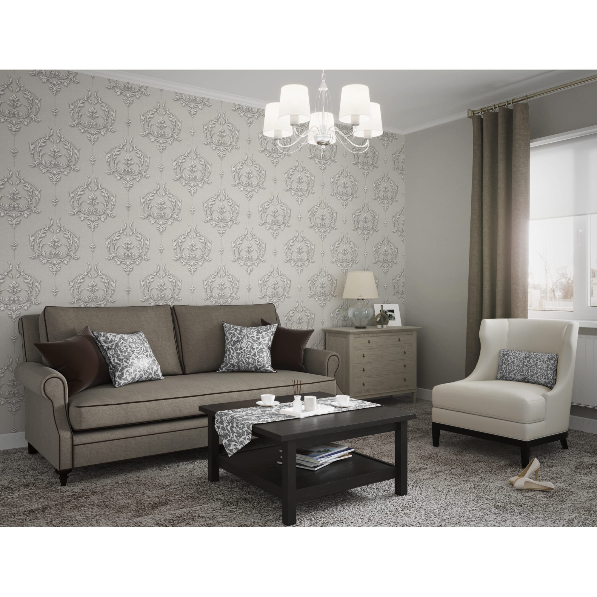 Обои флизелиновые Vog Collection Турецкий дамаск серые 1.06 м VV71062-14