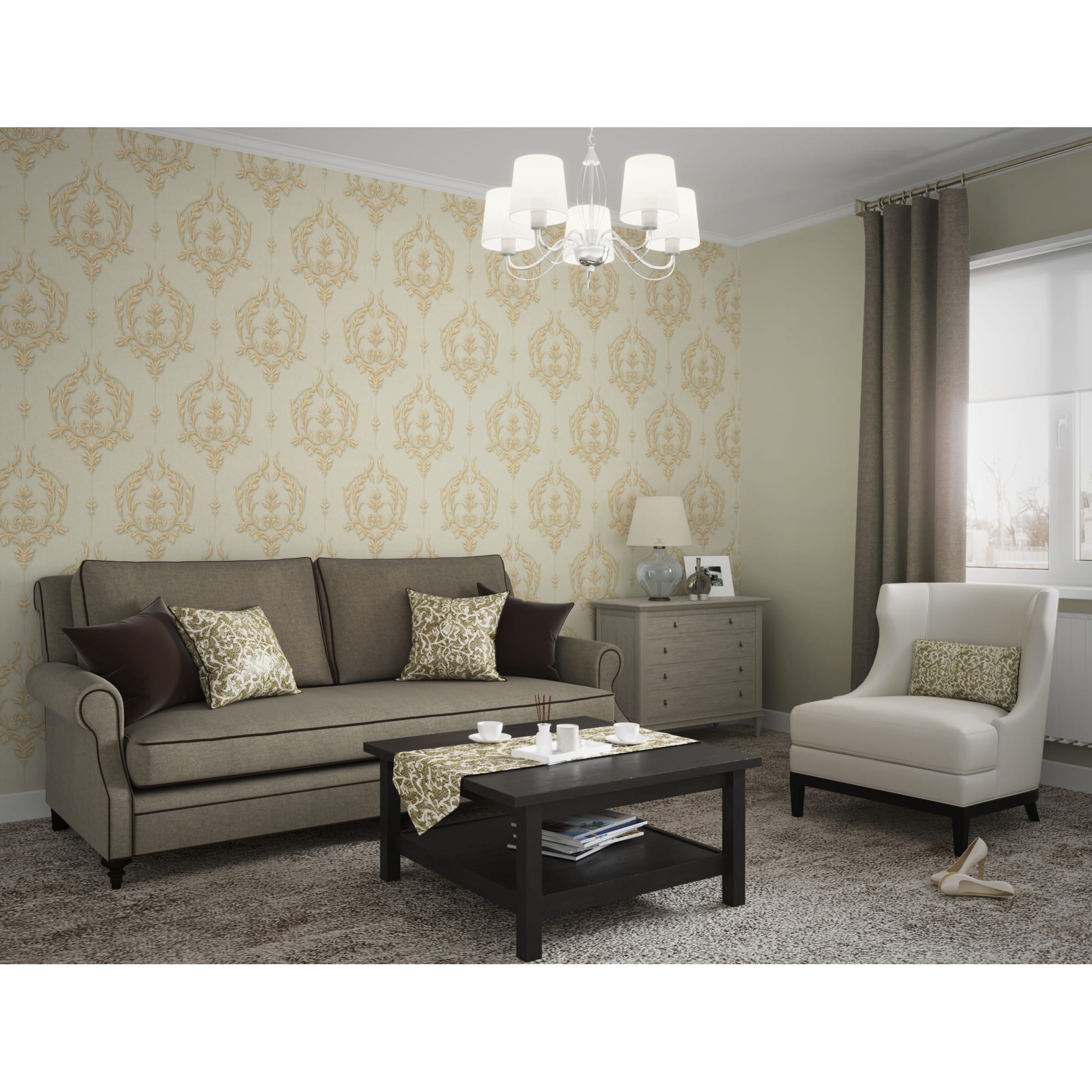 Обои флизелиновые Vog Collection Турецкий дамаск бежевые 1.06 м VV71061-17