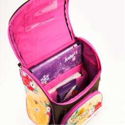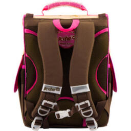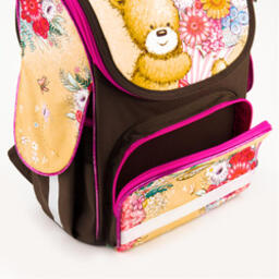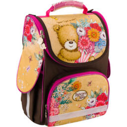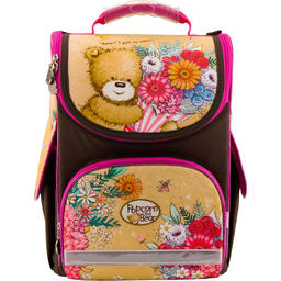 Рюкзак школьный каркасный для девочек Kite Popcorn the Bear, цвет: бежевый, коричневый