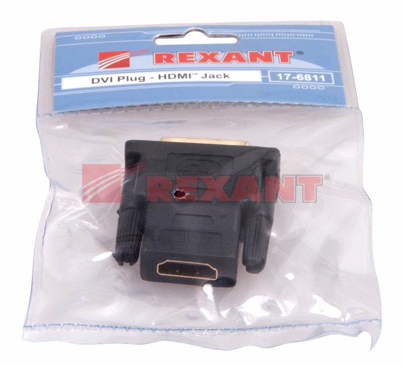 ПЕРЕХОДНИК шт.DVI - гн.HDMI REXANT предназначен для передачи цифровых видеоданных высокого разрешения и многоканальных цифровых аудиосигналов с защитой от копирования между кабелем и устройством. Используется для подключения устройств нового поколения с разными разъемами: компьютеры и ноутбуки, мультимедийные проигрыватели, игровые консоли, видеокамеры или другие видеоустройства, имеющие соответствующие разъёмы. С одной стороны переходника расположен разъем гнездо HDMI, а с другой штекер DVI. На контакты разъемов нанесен слой золота 24 карата по технологии вакуумного напыления, обеспечивающий повышение качественных показателей изображения и звука, а также отсутствие помех при передаче сигналов. Корпус адаптера выполнен из легкого и ударопрочного пластика. Для бережной транспортировки и защиты от загрязнений предусмотрена PVC упаковка.