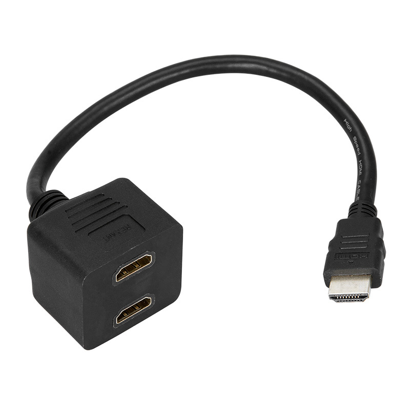 Переходник REXANT штекер HDMI - 2 гнезда HDMI с проводом предназначен для подключения двух устройств через один разъем источника цифровых видеоданных высокого разрешения и многоканальных цифровых аудиосигналов с защитой от копирования. Используется для подключения устройств нового поколения: телевизионные аппараты, компьютеры и ноутбуки, мультимедийные проигрыватели, игровые консоли, видеокамеры и другие видеоустройства, имеющие соответствующие разъёмы. С одной стороны переходника на проводе расположен разъем штекер HDMI, а с другой 2 гнезда HDMI. На контакты разъемов нанесен слой золота 24 карата по технологии вакуумного напыления, обеспечивающий повышение качественных показателей изображения и звука, а также отсутствие помех при передаче сигналов. Корпус адаптера выполнен из легкого и ударопрочного пластика. Для бережной транспортировки и защиты от загрязнений предусмотрена PVC упаковка.