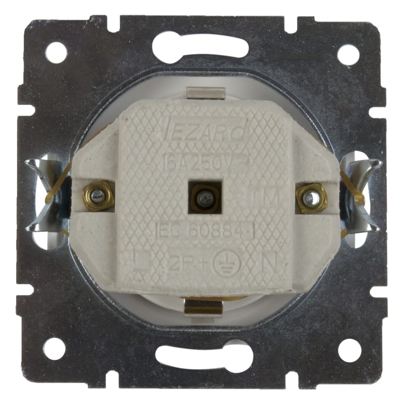 Розетка встраиваемая Lezard Rain с заземлением, с крышкой, цвет жемчужно-белый матовый
