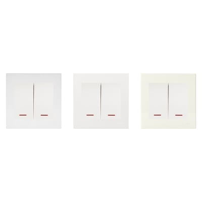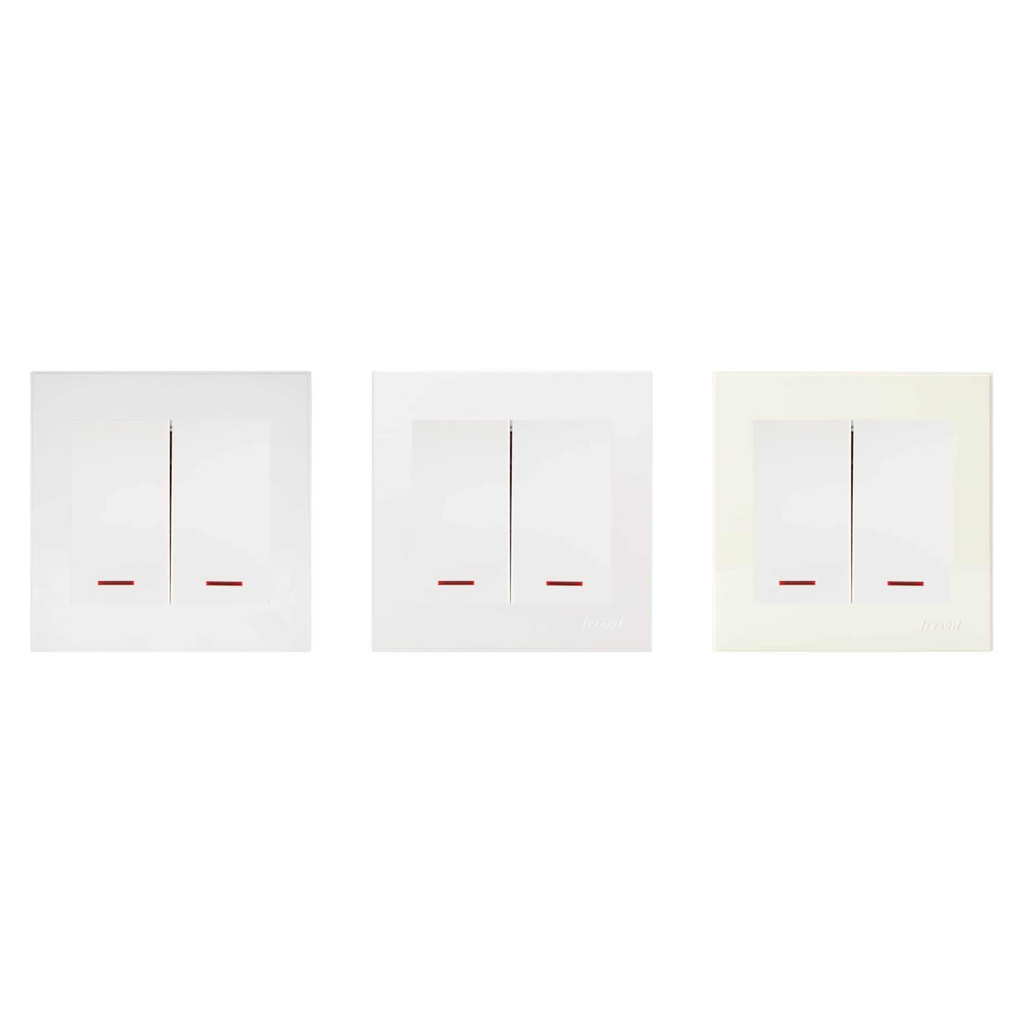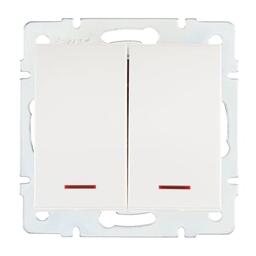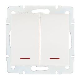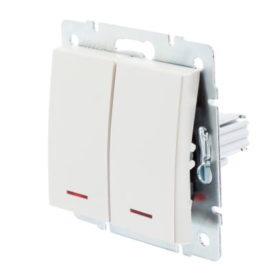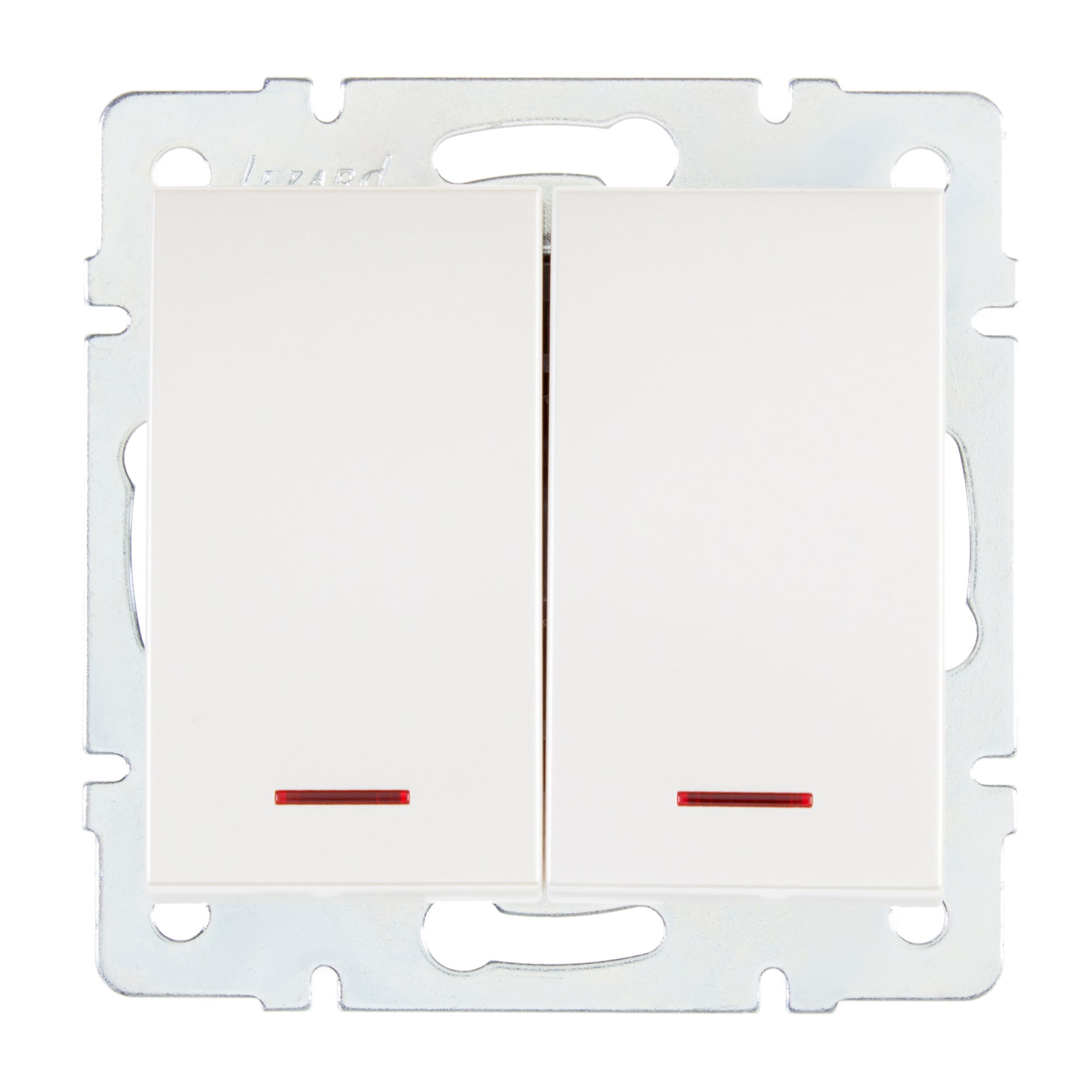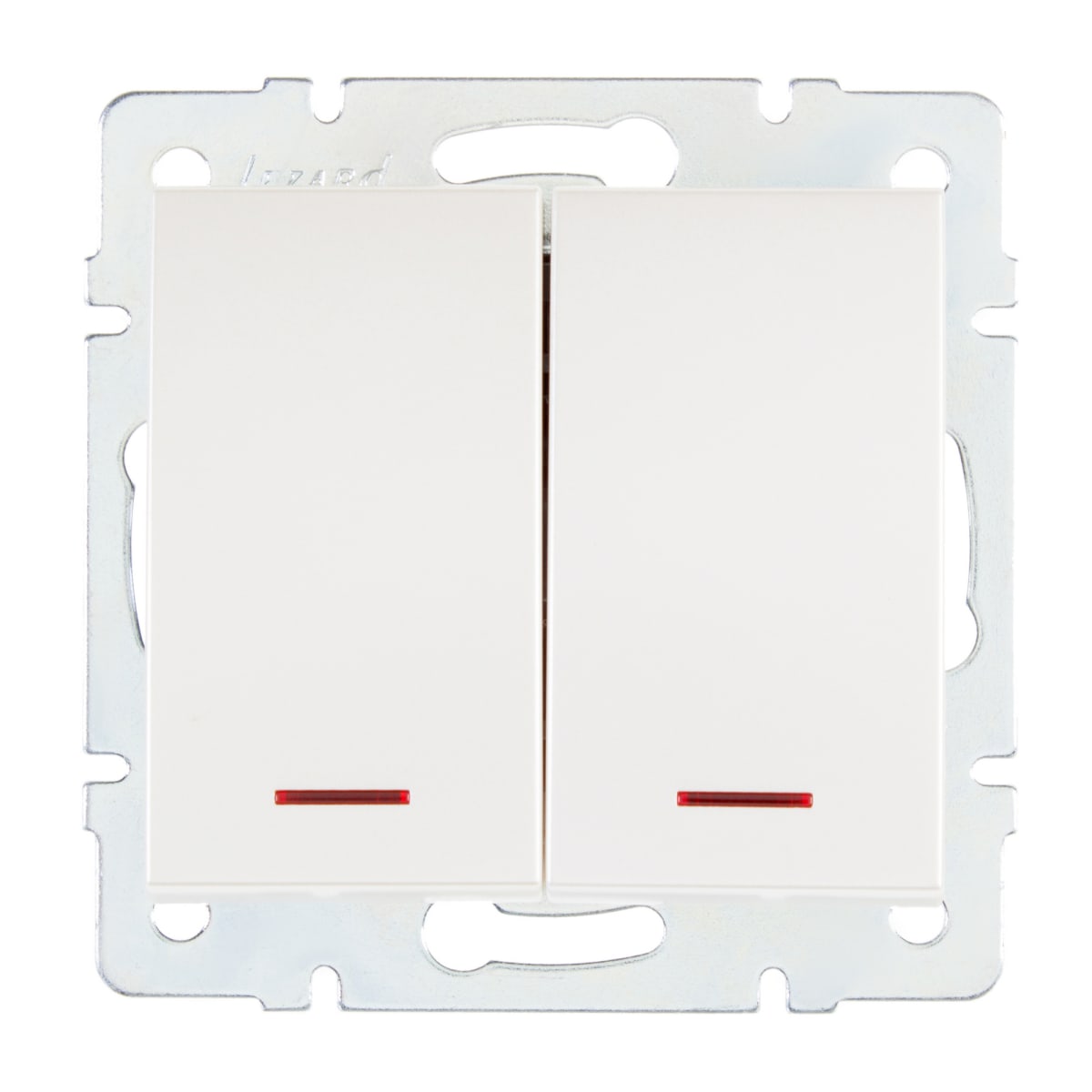 Выключатель встраиваемый Lezard Rain 2 клавиши с подсветкой, цвет жемчужно-белый матовый