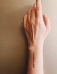 - Способ применения Выберите рисунок и вырежьте его ножницами; Снимите защитную пленку с переводной татуировки и приложите тату картинкой к коже; Тщательно намочите тату с внешней стороны мокрой губкой, либо салфеткой, подождите 20 секунд; Снимите аккуратно бумажку - и все готово ;) СЕКРЕТ: Как продлить жизнь переводной татуировке: Выбирайте правильное место у себя на теле, желательно чтобы это не был сгиб руки или подмышка, так легче уберечь переводную татуировку от трещинок; Кожа перед нанесением должна быть чистой. Можно протереть место спиртовым раствором, чтобы обезжирить кожу, благодаря этому татуировка будет держаться дольше.