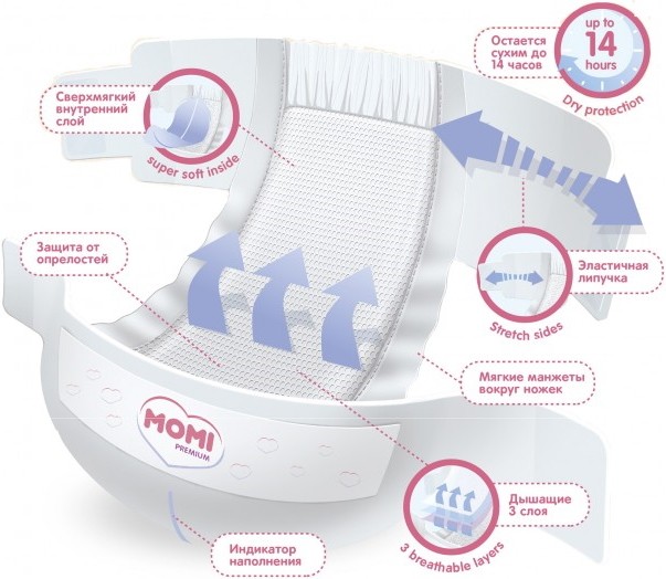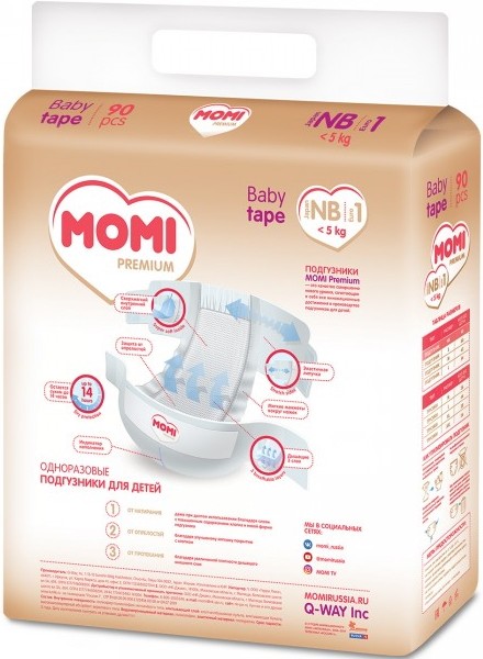 Подгузники (памперсы) Momi Premium Diapers NB / 90 pcs