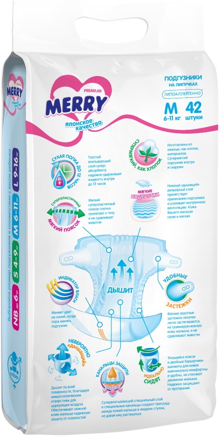 Подгузники (памперсы) Merry Diapers M / 42 pcs
