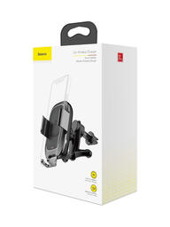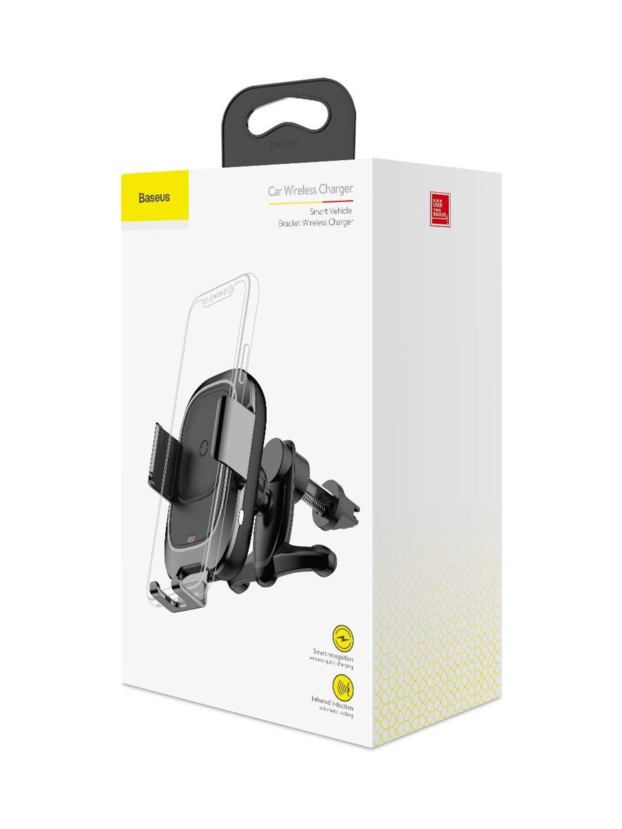 Автомобильный держатель для телефона в дефлектор с беспроводной быстрой зарядкой Baseus Smart Vehicle Bracket Wireless Charger Black