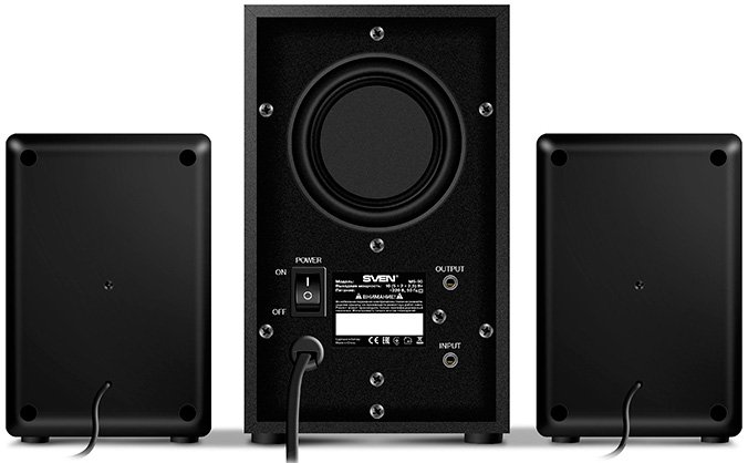 2.1, 10 Вт, нижняя частота 60 Гц, верхняя частота 20000 Гц, регулировка нЧ, питание: от сети.