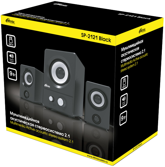 2.1, 9 Вт, нижняя частота 20 Гц, верхняя частота 18000 Гц, питание: от USB.