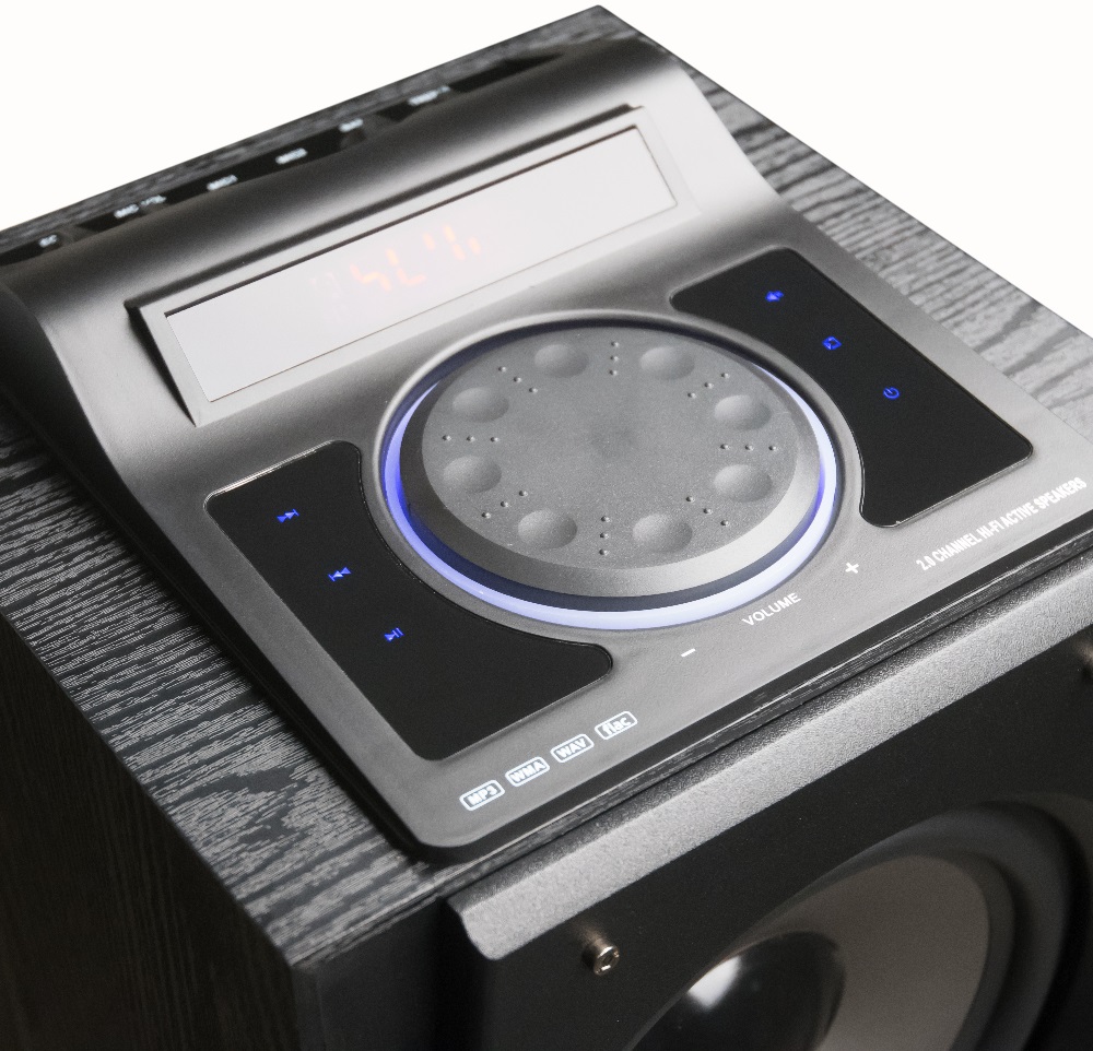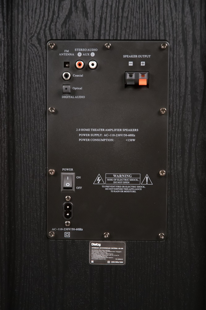 2.0, 130 Вт, нижняя частота 40 Гц, верхняя частота 20000 Гц, 70 дБ, регулировка нЧ, вЧ, FM-тюнер , uSB Flash (флешки), пульт управления, питание: от сети.