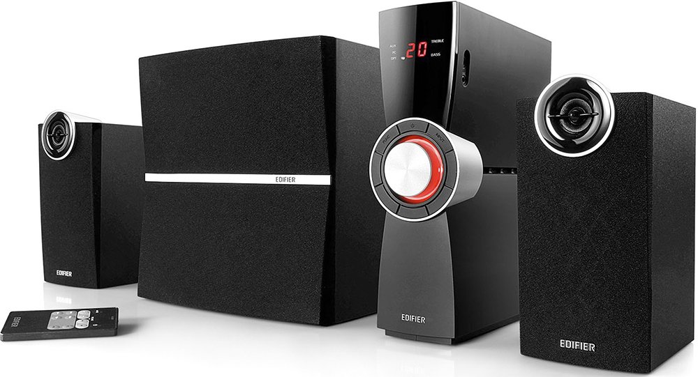 2.1, 53 Вт, нижняя частота 55 Гц, верхняя частота 18000 Гц, 85 дБ, пульт управления, питание: от сети.