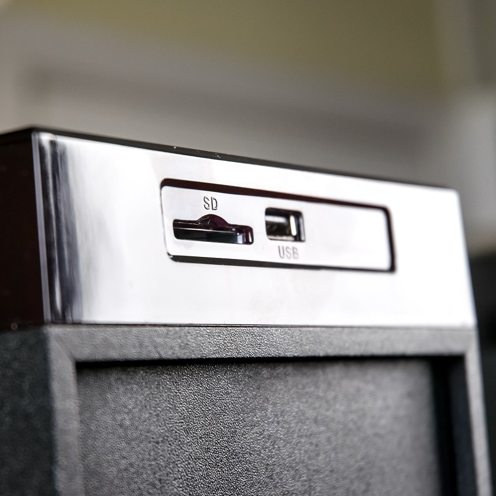 2.0, 60 Вт, нижняя частота 20 Гц, верхняя частота 20000 Гц, 80 дБ, регулировка нЧ, вЧ, FM-тюнер , карты памяти, uSB Flash (флешки), пульт управления, питание: от USB.