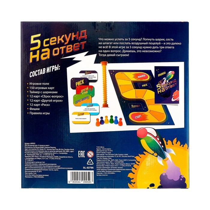 - Комплектация фишки; игровое поле; правила игры; таймер; игровые карточки