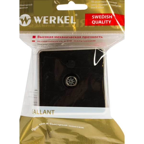 ТВ-розетка оконечная накладная Werkel Gallant звезда, цвет чёрный с серебром